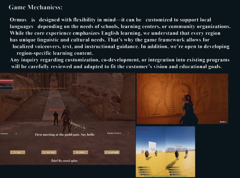 Ormus is a single-player language-learning RPG that blends story, gameplay, and education into one experience. Players learn on their own through quests, choices, and interactive challenges.
